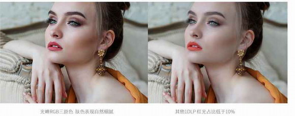 另一個影響色彩表現的重要指標是紅光占比。大部分DLP激光投影機紅光占比只有7%不到,紅色畫面表現暗淡,基于ALPD技術和RGB三段色輪技術,光峰S系列的紅光占比達到16%,達到TI推薦的顏色表現好的標準,紅光占比高,紅色表現不偏色,人物膚色更自然,畫面細節表現更為細膩。