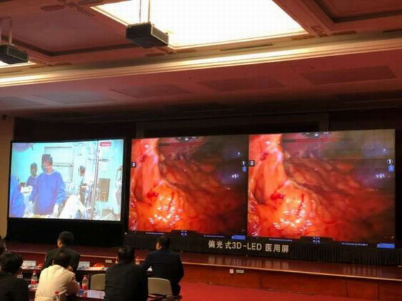 在兩天的現場手術直播中,首次應用洲明UTV-3D醫學屏幕進行機器人3D手術直播和3D腹腔鏡手術直播,展示了當前肝膽胰外科最前沿的手術技術與醫師們精湛的手術技巧。現場觀眾云集,3D帶來的立體場景和深度信息讓醫學工作者感受到身臨其境的手術過程,更好地認清病灶,縮短學習時間。