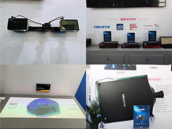 除了精彩的投影秀演繹,贏康還帶來多個國際一流品牌產品。科視D4K40-RGB真激光投影機一經推出便驚艷眾人,它具有Native 4K(原生4K)、All-in-One(一體化)、Pure RGB(純激光)的特點,擁有高達40000的流明亮度,在兼容性、靈活性方面表現優異,運行持久穩定,并且在展會現場的強光環境下也有出色表現。現場更有久經項目考驗的Alcorn表演控制系統和同步播放系統、7thSense無損無壓縮媒體服務器和Scalable自動校正系統等產品引人駐足。