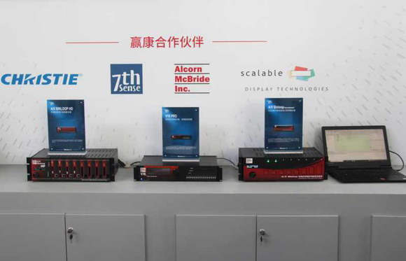 Alcorn作為行業內領先的燈光控制和主題娛樂公園A/V設備制造商,憑借其產品的穩定與經久耐用,數十年來一直廣泛應用在迪士尼、環球影城等游樂園的核心系統中。在國內,贏康曾將Alcorn產品用于陜北民歌博物館球幕影院、“夢幻長城”球幕影院、合肥萬達電影樂園、5D光影秀“影動無錫”、國家博物館乾隆南巡圖等多個項目,為項目提供了音視頻同步播放、表演控制、燈光控制等多方面的同步控制。本次展會上贏康展位現場進行了Alcorn的同步傳輸演示,強大的實時同步播放、分組同步播放、編程自動播放功能,讓現場的演示靈活多變,盡顯靈動趣味。