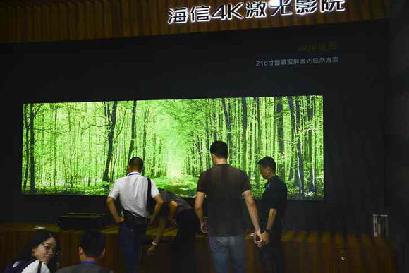 在海信激光電視展區,我們也看到了海信4K激光電視L5系列,其中包括80吋、88吋和100吋三個版本。 同時海信也展出了一款面向商用市場的150吋激光影院產品,激光顯示能夠極大提升電視的色彩性能,用戶更容易體驗到超高清、大畫面、健康護眼的這些功能特點。
