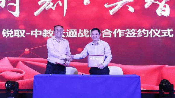 在渠道大會晚宴現場,銳取與十佳合作伙伴商之一——中教云通科技有限公司,進行了戰略合作協議的簽署,進一步在市場推廣端加強合作,擴大全行業全場景錄播方案的輻射范圍,最大限度促進“與時刻·共智慧”的愿景落地。