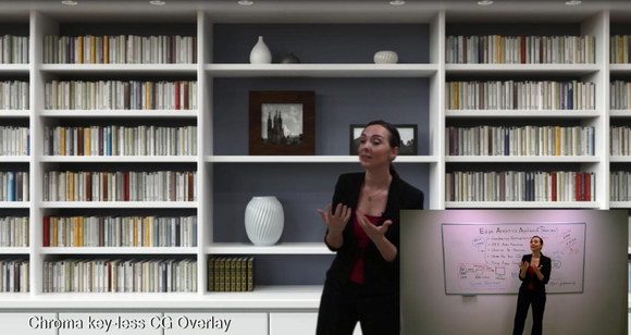 增強分析單元REA-C1000的無幕布摳像功能是基于索尼獨特的動作偵測技術打造的,它可以提取教師圖像,并將其覆蓋到任何虛擬背景上,而這一過程不需要使用專門的綠色或藍色幕布,且無需經過專門培訓。這為用戶提供了一個簡單、經濟的色度鍵摳像解決方案,使企業宣傳視頻、虛擬演播室、虛擬采訪、網絡教學和微課視頻等內容更具吸引力和感染力。(該功能將在2019年晚些時候的軟件更新中實現。)