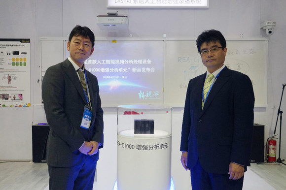 展會首天,索尼舉辦了其首款人工智能視頻分析處理設備“REA-C1000 增強分析單元”的新品發布會。這是一款具有板書內容實時提取、無幕布摳像、PTZ云臺自動跟蹤、姿勢感應放大、固定\追蹤區域畫面裁切等功能的智能產品,最高支持4K分辨率輸入和輸出。
