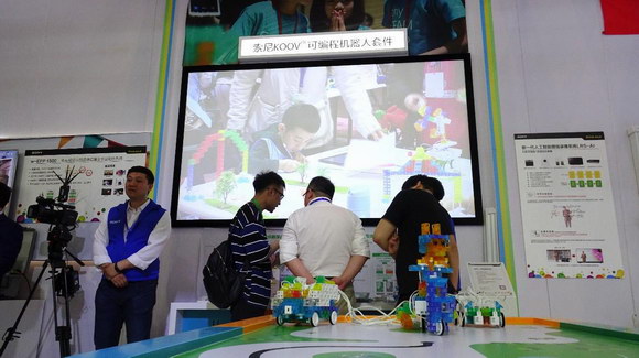 本次展會還特別開設了KOOV®可編程教育機器人公開課,現場介紹、展示KOOV教育機器人在教學中的應用。作為一款教育產品,KOOV教育機器人套件秉承寓教于樂的宗旨,鼓勵孩子通過創意與科技的結合動手拓展想象力。它包括色彩繽紛的拼插模塊、設計簡潔的電子元件以及專屬應用程序。