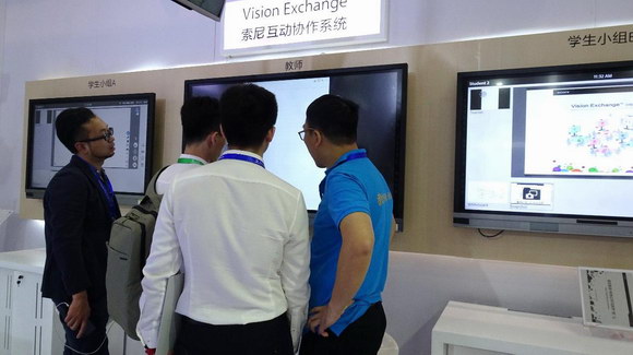 本次展出的眾多教育整體解決方案也同樣獲得了觀眾及各界的關注。索尼Vision Exchange互動協作系統解決方案,力求將“單向教學”變為“互動課堂”環境,以PEQ-C100或PEQ-C130協作系統為中心,將學生、講師和演講者凝聚在一起,打造出動態工作組環境,聯動整個課堂,輕松共享多媒體內容,甚至可將遠程師生加入到討論當中,實現“互動、協作、分享”理念。