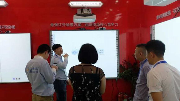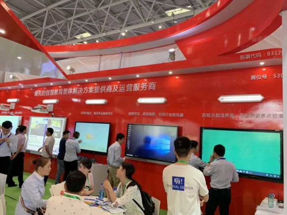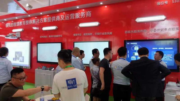 展會首日,重慶國際博覽中心匯集了上千家優秀教育平臺及軟件商、內容提供商、技術及設備服務商,提供國內最尖端的解決方案及信息化教學設備。艾博德股份展位現場更是人潮涌動,氣氛濃烈。本次艾博德股份為大家展示了最新款的觸摸一體機,包含超窄邊框系列、紅外多點全貼合系列、超清系列等,以及自主研發的紅外白板、電容白板、紅外白板一體機、電容白板一體機等產品。艾博德微校通軟件進行全新升級改版,嶄新的軟件界面,豐富的教學功能,展現最新的走班排課模塊。艾博德云智更是為我們帶來了落地智能終端機、條形屏、彩票機等等,吸引眾多觀眾駐足參觀,展會現場更是盛況空前。