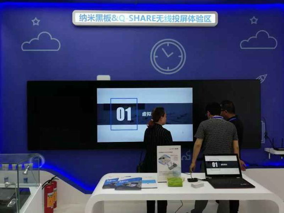 納米黑板結(jié)合粉筆+水寫筆觸摸,同時(shí)結(jié)合Q-Share實(shí)現(xiàn)多媒體教學(xué),無線投屏設(shè)備同時(shí)支持電腦和移動(dòng)終端同時(shí)顯示。