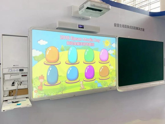 愛普生一直致力于滿足用戶需求,在本次展示會上展示的多種教學解決方案為用戶帶來不少便利。愛普生智慧萬向板教學解決方案是在保留板書的情況下,移動開黑板便能讓投影機始終投影在教室黃金位置,老師在播放教學課件的同時,還可以在一旁板書重要的知識點。該方案可以大大提高教學效率,為師生帶來更優質的課堂體驗。