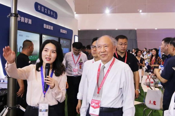▲第十屆全國人大常委會委員、原國家教育委員會副主任、教育部原總督學(xué)柳斌蒞臨銳取展位參觀指導(dǎo)
