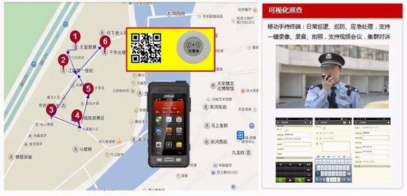 可視化巡更系統(tǒng)基于固定巡更作業(yè)需求,形成“技防+人防”的監(jiān)管模式。利用移動(dòng)手持終端做為巡更器,以二維碼做為巡更點(diǎn),平臺(tái)能定位安保人員巡更點(diǎn)位并繪制巡更軌跡,緊急情況時(shí)可直接與管理中心對(duì)講,錄音錄像實(shí)時(shí)畫面回傳,以便快速的指揮調(diào)度處理。