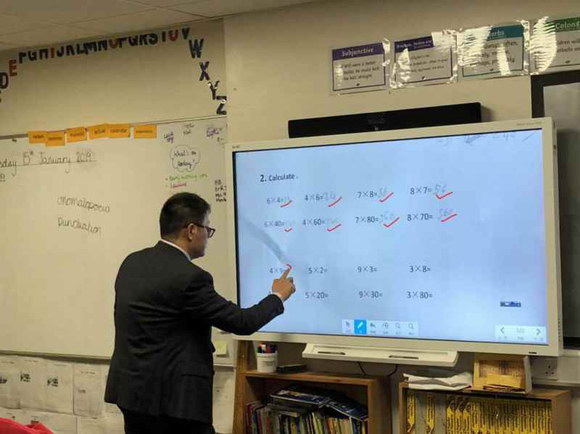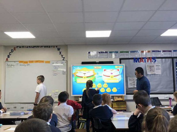 除了上海特色的教學方法,大王老師另外一件事也引起小小的轟動:他把希沃白板、希沃授課助手等信息化教學工具帶到了英國課堂。