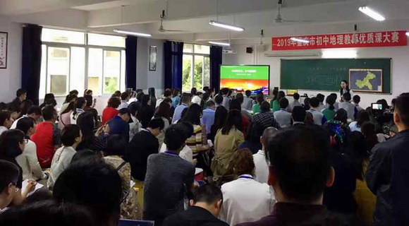 2019年4月18-19日,由重慶市教育科學研究院主辦,重慶市榮昌區教師進修學校、寶城初級中學、羿飛教育承辦的重慶市2019年初中地理教師優質課大賽在榮昌區寶城初級中學成功舉行,來自重慶38個區縣和各直屬中學的48位地理老師參加了比賽。