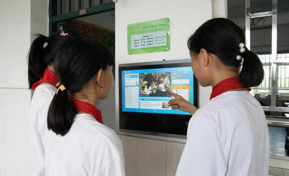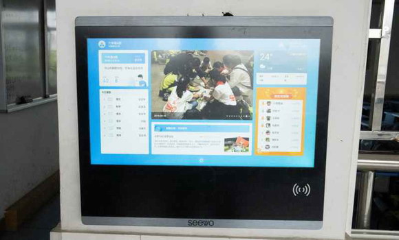 如今,每個班級門口的班牌成為植材小學一道亮麗的風景線。上一秒,老師拍下學生的優秀課堂作業,下一秒,作業照片就傳上了班牌。開會時,通知一鍵發送,每個班的學生就知道今天下午3點要開年級會議。傳達之間,既實現了傳統條件下的宣傳目的,又保證了信息傳遞的時效性。