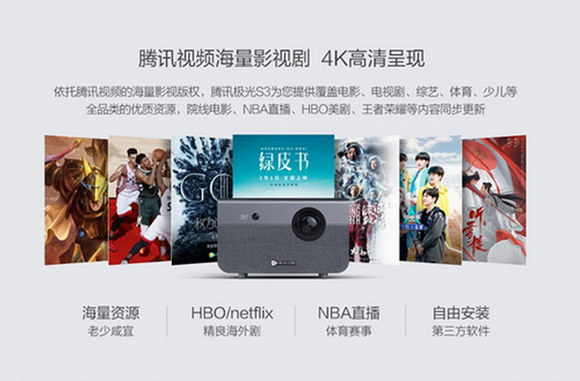 騰訊極光投影S3采用高亮固態RGB LED,20000小時光源壽命,一樣的3+32配置存儲,采用的是0.47DMD顯示芯片,所以分辨率是4k的有點不能十分確定。同時搭載 MST838性能智能芯片,配合HDR 10顯示技術以及MEMC運動補充技術,不僅響應速度更快,操作更流暢,在播放高幀率的電影時優化更好,帶來更加真實的影像效果。