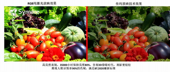 成本的降低、操作的簡化并不意味著放映質(zhì)量的下降,相反,相對于傳統(tǒng)RGB激光放映,Symace®超旋光電成功實(shí)現(xiàn)了“兩低三高”,即價(jià)格低、能耗低的同時(shí),畫質(zhì)高、亮度高、耐久高。低至4%以下的散斑對比度保證了“噪點(diǎn)最少、畫質(zhì)最好”;最高56000流明的高亮度光源讓單機(jī)就能hold住巨幕廳;同亮度下能耗降低40-50%,全年可節(jié)省用電3萬余度;35000小時(shí)放映后仍然可以保持80%的亮度,1個(gè)光源續(xù)航6到8年。