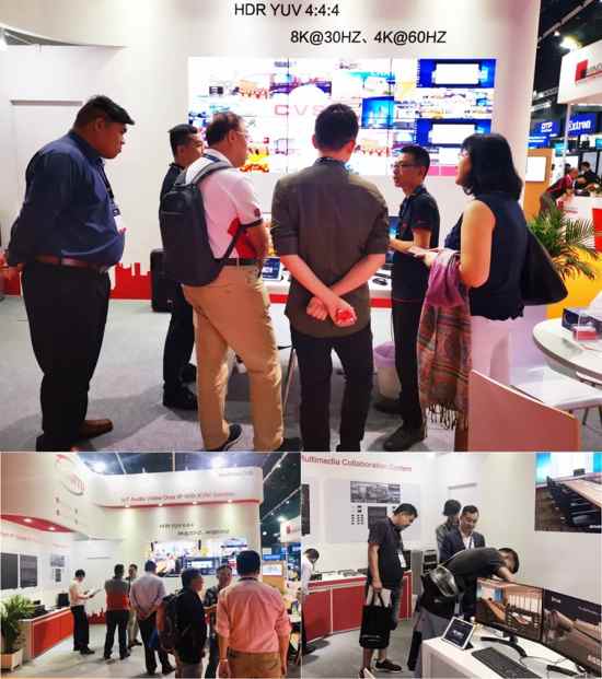 此次InfoComm SEA展,CHARTU長圖以極簡風打造智能分布式多媒體協作交互體驗區,將行業先進的音視頻傳輸技術帶到東南亞市場。現場解密自帶強大音視頻傳輸“HDR YUV 4:4:4”、“8K@30Hz”、”4K@60Hz”功能的“智能分布式英雄”,如何從技術層面的英雄落地為項目英雄,真正的為客戶展示了“功能很強大”、“操作很便捷”、“結構很明晰”、“實施so easy”的音視頻傳輸界的CHARTU長圖“英雄”。