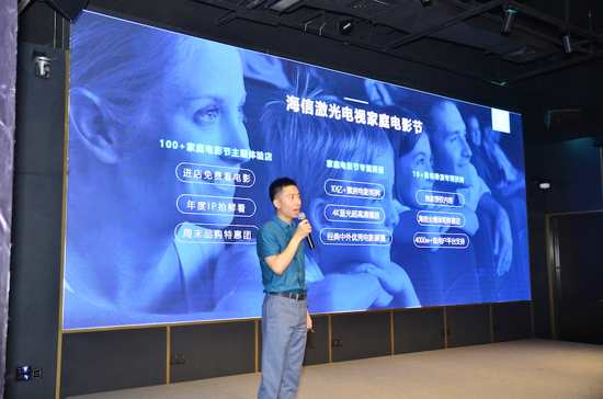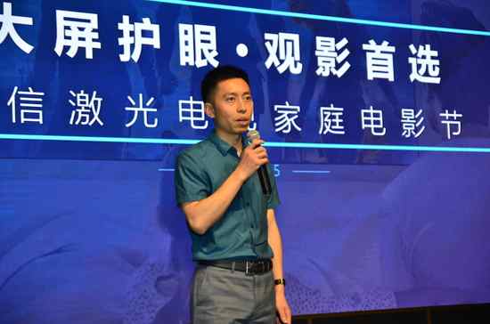 首先,海信激光顯示股份有限公司副總經理高狀升做了名為《打開電視看電影,家庭觀影已成趨勢》的主題演講。