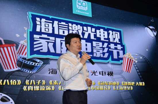 5月25日下午,位于上海市南京西路399號明天廣場裙樓2樓的“機遇中心·聚場”人頭攢動。海信激光顯示股份有限公司副總經理高狀升等海信激光電視高管,偕同影視發行機構新麗傳媒副總裁劉航以及《破冰行動》導演李晉瑞、《白夜重生》導演楊冬和青年導演馬可滼等共同出席了“海信激光電視家庭電影節”啟動儀式。