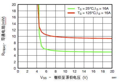 圖2.CSD19531 RDS(on) 與 VGS
