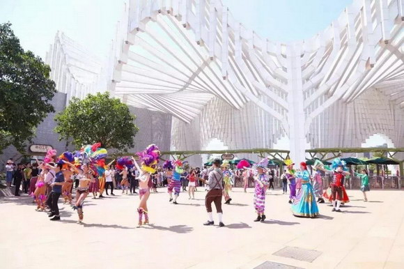 主題樂園以“場景再現”和“電影”為要素,將獨特建筑景觀與特效電影結合。其中“鄭和寶船”、“星際穿越”、“奇幻翱翔”和“4D夢工廠”四大特效影院由NEC鴻合工程團隊實施,高水準的硬件與內容相結合,使其成為園內的人氣娛樂項目。