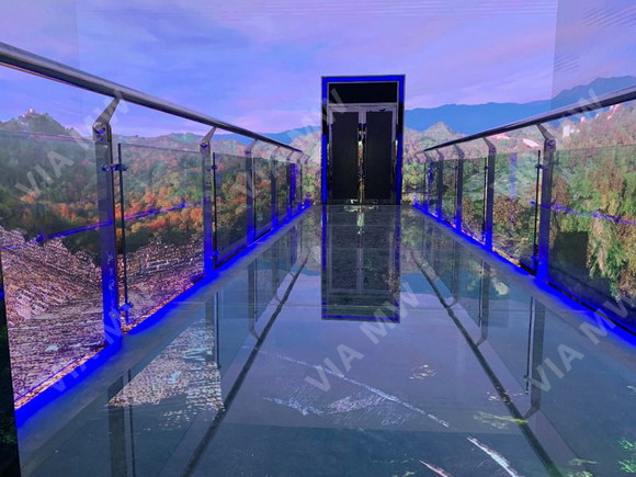 其中太空植物博覽園3D七百二十度沉浸式影院可帶您探索神秘的太空、感受四季大自然的神奇魅力,在穿過空中玻璃走廊時,將全方位引領游客切身感受全國第二個3D七百二十度全景影院帶來的科幻效果。