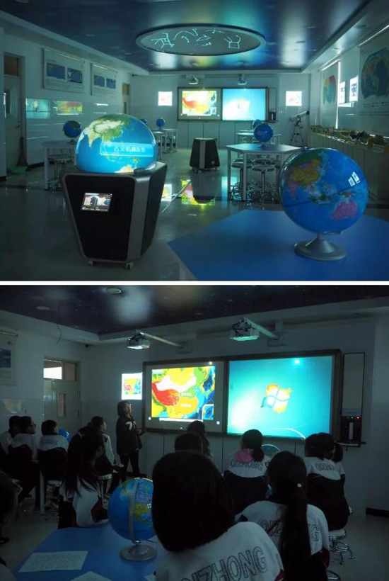 位于教室前方的數字立體地形,專門針對地理學科特點研發,將三維地形模型和虛擬數字影像相結合,教師可輕松切換中國、世界立體地形、教學PPT、Flash動畫等不同模式,滿足各種教學所需。課件內容緊密貼合教學大綱,并能不斷地編寫與更新,無限擴充理教學內容,給任課教師帶來更大的自主性。