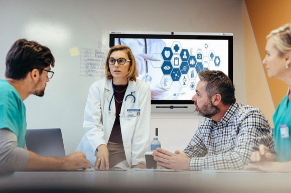 在PruittHealth的會議室中,newline讓護士與醫師溝通更為順暢,討論某個客戶的近況時,資料清晰顯示在屏幕上,醫師用手指直接勾畫重點信息,并進行標注講解;護士則可以分享日常工作情況,手機或平板電腦中的照片等資料可隨時推送至大屏,會上與醫師探討;討論成果與全新想法均可隨時開啟newline協同白板功能進行記錄,方便會后保存與分享。