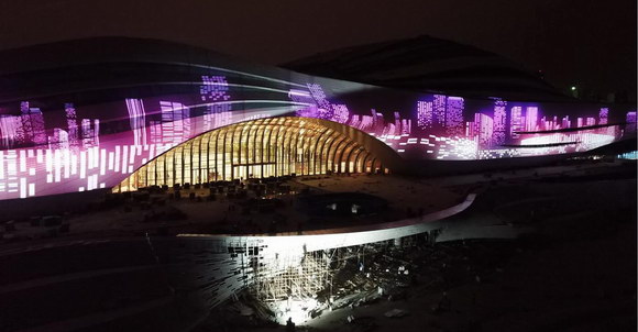 而絲路中心的燈光秀也包含心血。今年的投影主題就有一個好聽的名字:“云動翼深情”,這個浪漫的主題取自詩經(jīng)·爾雅中的詩詞“風(fēng)瀾云動”。“云動”即是借喻建筑外觀“流動白云”的特點,通過畫面演繹展現(xiàn)“流云”對腳下這片土地最深沉、最厚重的摯愛。無論“流云”飄蕩在何處,心就在這里,根就在這里。同時,翼也是河北的簡稱,詮釋了對河北美好的期望與愿景。