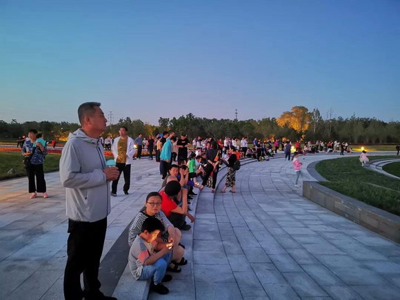 可以看到天還沒黑,絲綢之路國際文化交流中心前的廣場上就已經(jīng)聚滿了人,大家都在等待著驚艷的一刻。