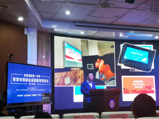 隨后,希沃售前顧問余永鋒分享了智慧校園環境建設的部分的內容。從“三通兩平臺”到“三全兩高一大”的建設進程中,希沃為寶雞高新一中提供從硬件到軟件,從數據分析到平臺呈現的全方位服務。