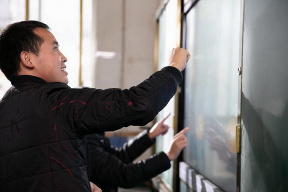 (魯老師正在體驗(yàn)信息化設(shè)備)