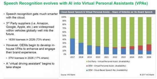 車載信息娛樂系統,或者擴大一點說座艙電子/智能座艙,是汽車系統中引入新技術最積極的方向,也由于不斷引入新功能而變得越來越重要,根據君迪公司提供的數據來看,在2018年裝車率提升10個百分點以上的配置分別是:觸摸屏操控裝置(45%->60%),語音識別(20%->33%),盲區監測/警報系統(20%->33%),防碰撞/警報系統(27%->40%),車道偏離警告系統(19%->30%),內置夜視系統(13%->27%),抬頭顯示系統(8%->19%),短短幾年間發展十分迅速。
