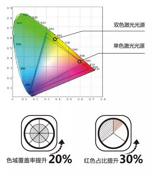 當投影機4K普及化號角吹響后,擁有4倍清晰度的超高清畫面,對色彩也提出更高的要求,更廣的色域、更高的色彩表現力就成為了衡量4K激光投影機重要指標。