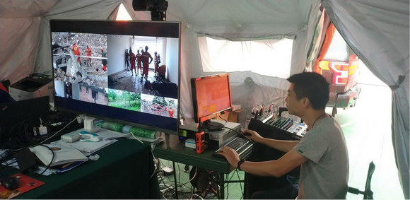 4G單兵由前線八個支隊的消防指戰員攜帶、實時回傳救援作業點的圖像和視頻