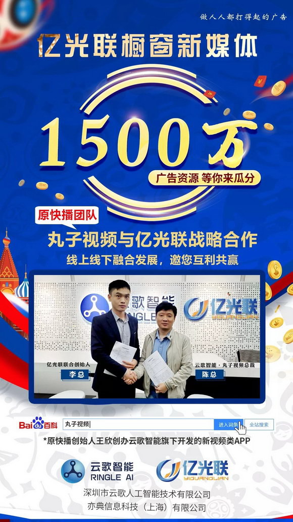 丸子視頻是以“人人都是秀主”為理念,億光聯是以“做人人都打得起的廣告”為宗旨。因為共同的目標,億光聯與丸子視頻不謀而合。