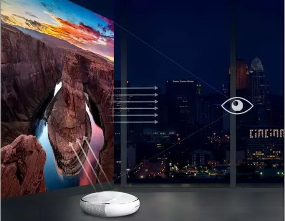 采用超短焦技術,長虹激光電視可達到0.21投射比,也就是說,最短距離僅需14cm,即可投射百吋大屏。相比于普通投影,長虹激光電視可以有效避免因距離過長、受環境光干擾而帶來的畫面上的影響。