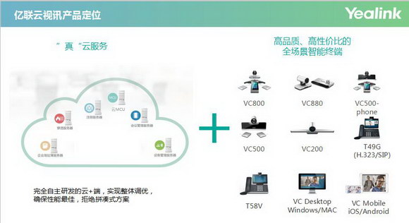 為更好的升級云+端的新型視頻會議運作模式,億聯強推出億聯云視訊,億聯云視訊是一個基于云架構的支持多方視頻會議的服務平臺,集云MCU、注冊、穿透、會議管理、會議控制、設備管理等服務模塊于一體,并支持億聯視頻會議終端、桌面視頻話機、PC軟終端、移動APP等億聯全系列視頻會議產品。