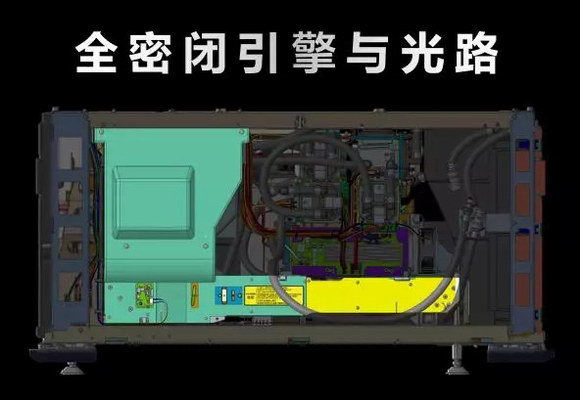 不僅是對光源,整體冷卻系統還負責引擎部分的降溫,最大程度的對光路整體結構保駕護航。全新的整機工程設計,將冷卻和散熱系統集成在機身內部,不再需要外置液冷箱,從而實現all-in-one的設計。