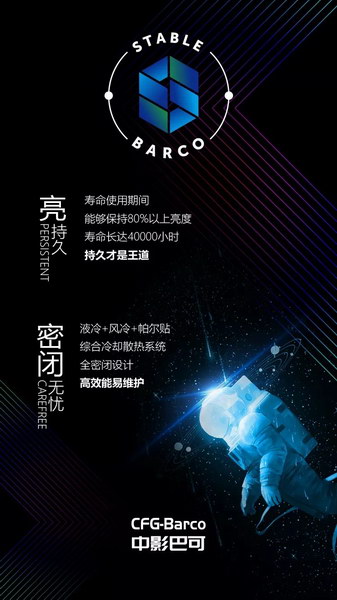 巴可Barco S4第四代激光放映機,傳承了巴可Barco一貫的高效率設計,采用液冷+風冷+帕爾貼的綜合冷卻散熱系統,保證了激光光源始終工作在適宜的溫度環境下,而S4放映機可以運行在高達40℃的機房環境中。