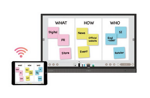 BenQ InstaQShare 純軟件方案無線傳屏功能,便利師生間的協作分享,當老師請同學分享作業時,遵循BYOD自帶設備學習法,學生可通過筆記本電腦或平板電腦,快速將自己的作品投屏到互動白板進行分享,提升學生的課堂參與度。