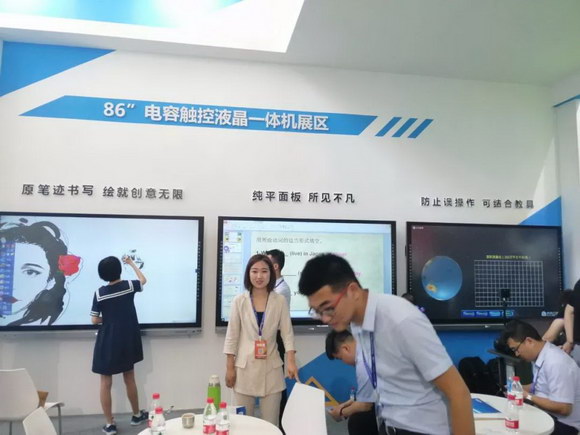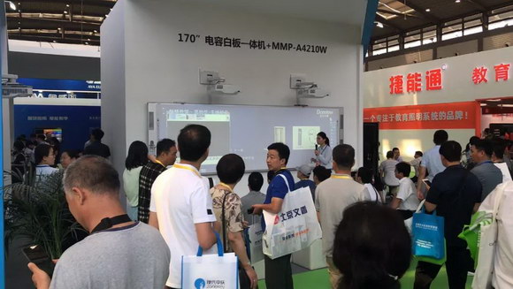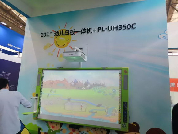 作為一個(gè)有社會責(zé)任感的企業(yè),東方中原一直關(guān)注學(xué)生的用眼健康問題,所以本次展會帶來了一系列“綠色環(huán)保”的智慧教學(xué)解決方案。Donview白板一體機(jī)就是其中的一項(xiàng)。屏幕尺寸太小,容易造成學(xué)生用眼疲勞,這是學(xué)生近視的一個(gè)原因。因此。東方中原開發(fā)了大尺寸的白板一體機(jī)產(chǎn)品。本次展會展示的有98”白板一體機(jī)+綠板、101”幼兒白板一體機(jī)和170”電容白板一體機(jī),可滿足各類不同規(guī)模教室使用,其中170”電容白板一體機(jī)在哪個(gè)展會都是當(dāng)之無愧的人氣王。Donview白板一體機(jī)所搭配的派克斯投影機(jī)所具有的高亮度、無散射藍(lán)色等優(yōu)點(diǎn),對學(xué)生視力的保護(hù)也發(fā)揮了重要作用。