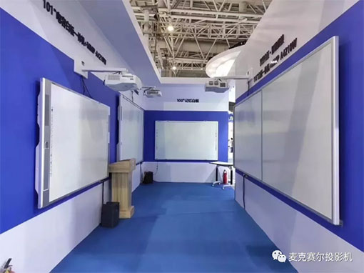 在講臺場景的應用中,麥克賽爾A9系列激光超短焦投影機搭載中方中原的電子白板產品,實現了交互式應用,能夠使課堂氛圍變得更加生動有趣。