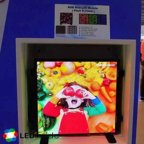 今年,臺灣地區(qū)LED封裝領(lǐng)頭廠商——億光電子在光亞展上首度展出間距只有0.75mm的Mini LED顯示模組。