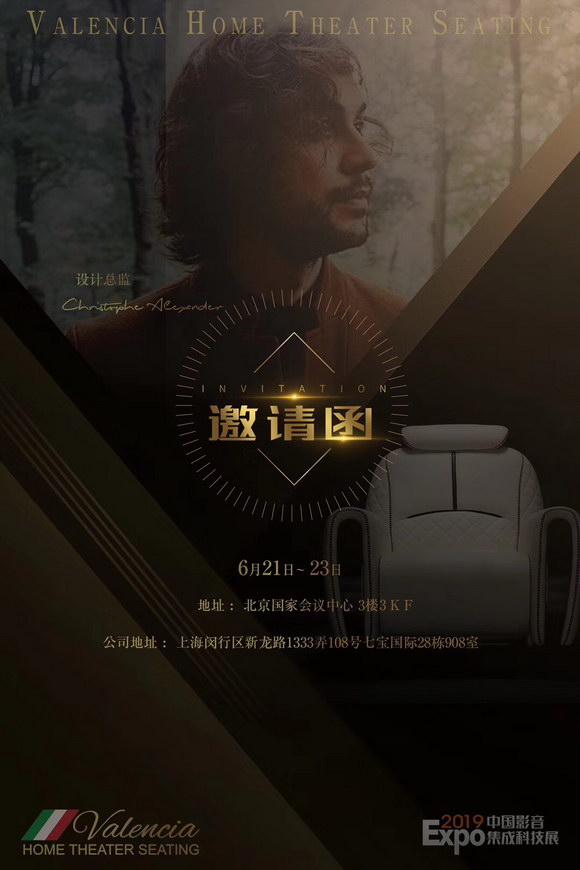 6月21日-23日,2019中國(guó)影音集成科技展(CIT)將于北京國(guó)家會(huì)議中心•會(huì)議區(qū)盛大開啟。一年一度的北京CIT大展已成為中國(guó)影音智能集成行業(yè)的焦點(diǎn)盛事,展會(huì)匯聚了影音集成領(lǐng)域的各種前沿技術(shù)、熱點(diǎn)產(chǎn)品與核心解決方案。此次,Valencia Home Theater Seating, 萬(wàn)倫歆雅家庭影院座椅將攜2019下半年度數(shù)款最新設(shè)計(jì)產(chǎn)品在展會(huì)上亮相,誠(chéng)邀廣大友人蒞臨。