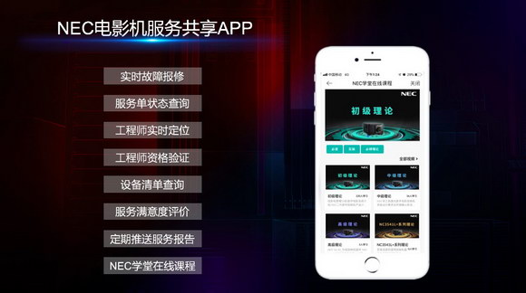 專業、高效、交互是當下NEC完善的服務體系呈現出來的三大特征。張總會上介紹了一組喜人的數字,讓與會嘉賓充分感受到了NEC的極致服務:售后服務客戶回訪滿意度高達99.9%;72小時修復率高達94.7%;VIP客戶24小時故障修復率達到了87.2%……每一個數字背后都體現著NEC售后的臻心服務。特別值得一提的還有NEC去年在業內首家推出的“NEC電影機服務共享APP”,實現了用戶實時故障報修,服務單狀態查詢,工程師實時定位等多種便捷功能,大大提高了服務效率和質量。近期新上線的“NEC學堂在線課程”模塊,進一步完善了NEC售后服務體系,幫助客戶實現技能升級,為行業技術人員儲備提供助力。
