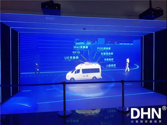 案例概況:浙江寧波某公安局使用DHN激光顯示投影機和融合器設備打造出融合高清大屏和L型融合大屏,供平時展示重要信息和領導參觀使用。