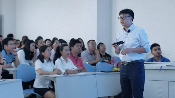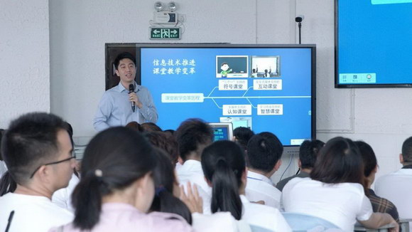 其他學(xué)校在教育信息化的改革上情況又是怎樣的呢?興義市豐都中學(xué)的楊波老師分享他們學(xué)校的智慧課堂建設(shè)經(jīng)驗(yàn)。他說(shuō)作為一所城鄉(xiāng)結(jié)合部的學(xué)校,在開(kāi)始做試點(diǎn)時(shí)經(jīng)歷了不少的艱辛,比如學(xué)生多出自農(nóng)村,有些是留守兒童,之前根本沒(méi)有接觸過(guò)電腦,教師年齡結(jié)構(gòu)偏大,對(duì)智慧課堂的應(yīng)用能力不足。但是,在克服種種困難后,他們看到了學(xué)生成績(jī)發(fā)生了喜人的變化。他感概道:“技術(shù)不會(huì)替代老師,但擁有技術(shù)的老師一定會(huì)替代沒(méi)有技術(shù)的老師。”