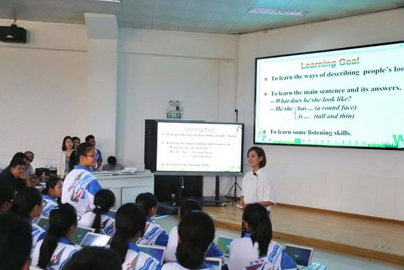 英語(yǔ)老師蔣麗的課程是非常有趣的《what does he or she look like?》。