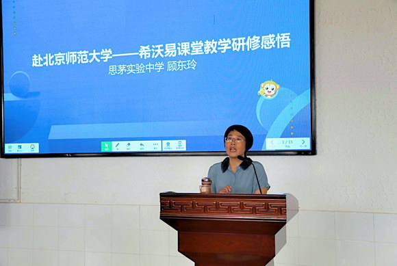“如何把課堂還給學(xué)生?”是赴北京師范大學(xué)希沃易課堂教學(xué)研修的初一數(shù)學(xué)老師顧東玲分享學(xué)習(xí)心得的主題,她從自己切身感受到的邊疆少數(shù)民族地區(qū)的教學(xué)困難講起,緊接著講到利用希沃“學(xué)生平板+交互一體機(jī)+班優(yōu)+希沃易課堂”的方式進(jìn)行教學(xué)產(chǎn)生的幾大的變化。